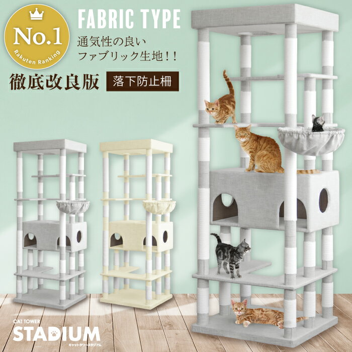 ファブリック キャットタワー 猫タワー 猫 キャット タワー 猫用品 据え置き 爪とぎ 多頭飼い Sクラス 落下防止柵 大きい猫 頑丈 cat 大型ハンモック付 キャットタワースタジアム キャットハウス ペット 家族 おしゃれ 194cm Stadium 詳しく見る